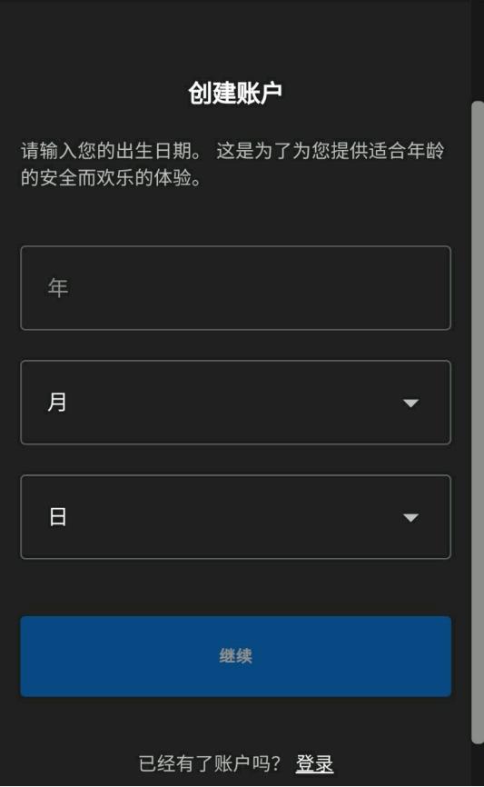 1、点击https://store.epicgames.com/zh-CN/地址,前往页面创建新账户,进行账号创建。(需要科学上网才可以)进入注册界面后第一步会先让我们输入出生年月
