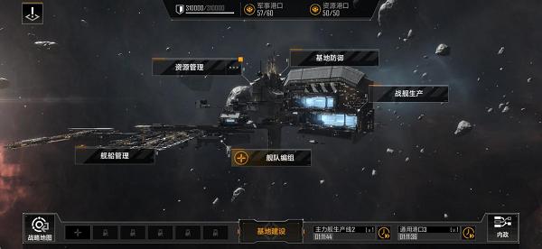 上图是游戏内的基地页面,主要由资源管理、基地防御、战舰生产、舰队管理、舰队编组以及辅助功能六个板块组成。