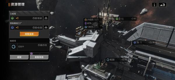 资源管理板块可以收取工程局、预制模组工厂、税务司的产出,工程令可以加速建筑建造时间,预制模组加速舰船建造速度,税收可以去商店购置商品。