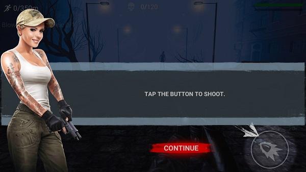 切勿让僵尸近身,如果实在没有办法,可通过左侧的脚蹬按钮,踢退僵尸。