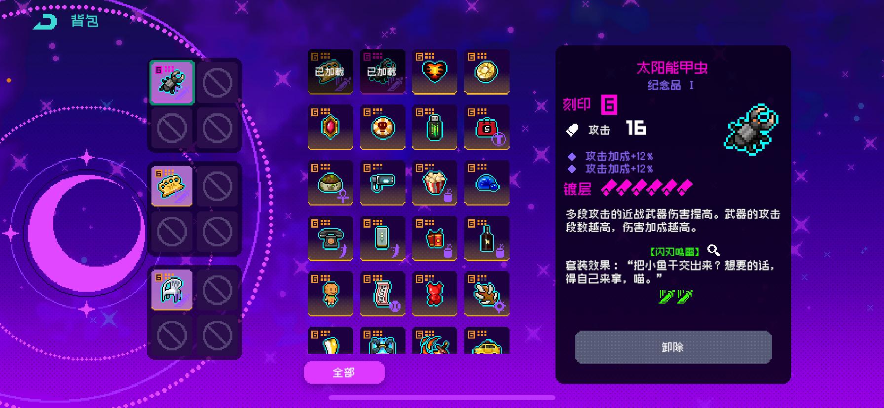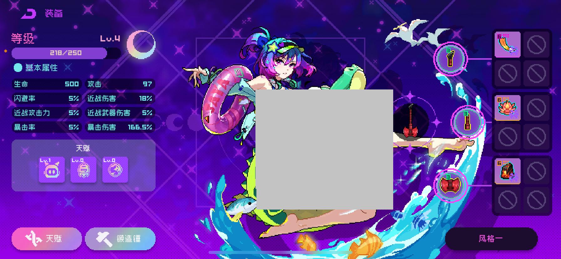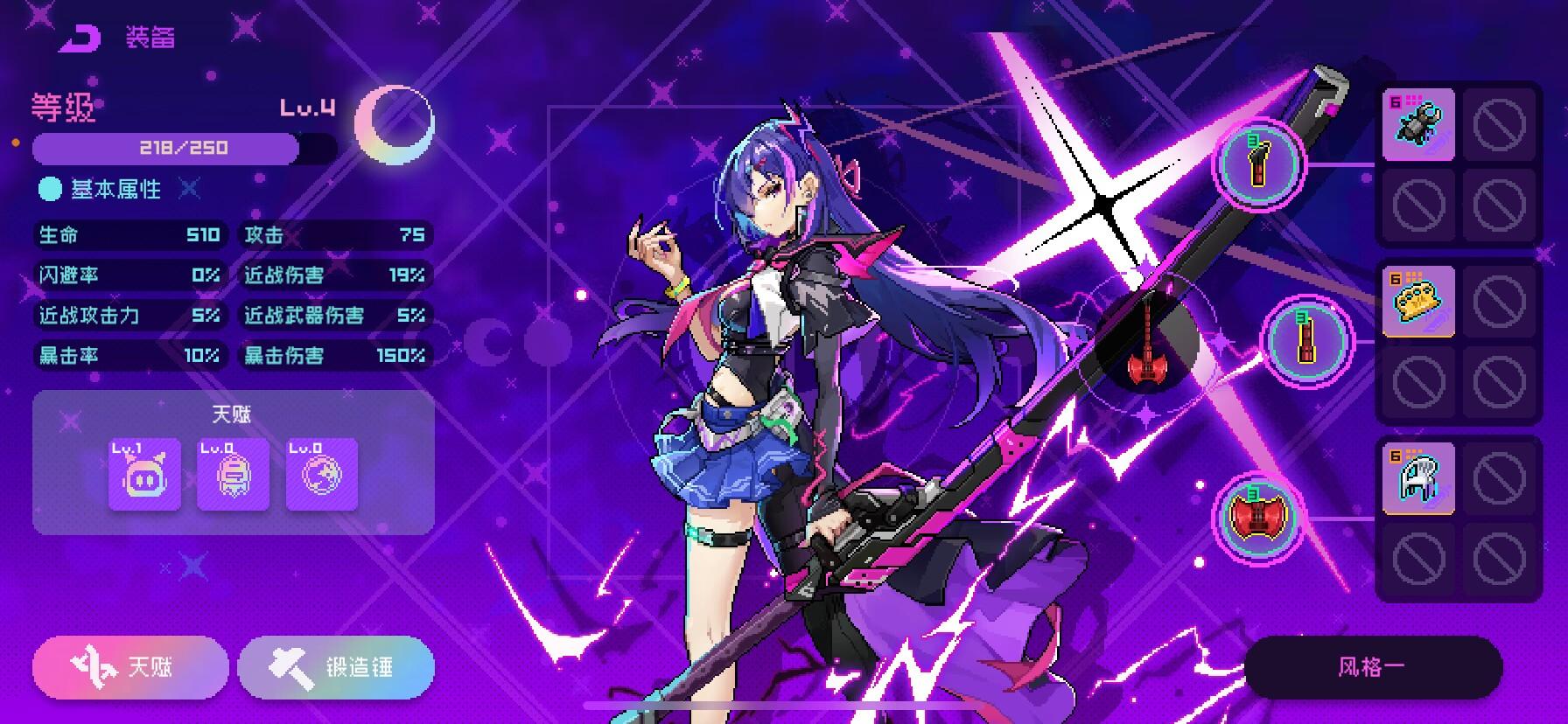 游戏整体设计以精致的像素风格为主,加以赛博朋克元素为辅,让游戏整体的视觉感受达到了一个顶峰,其次(霓虹)我可以解释为光污染嘛,绚丽的技能特效,加以街头式的背景音乐,沉浸感十足,唯一能打断我的就是被BOSS弄死的那一刻。