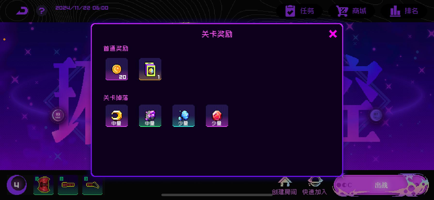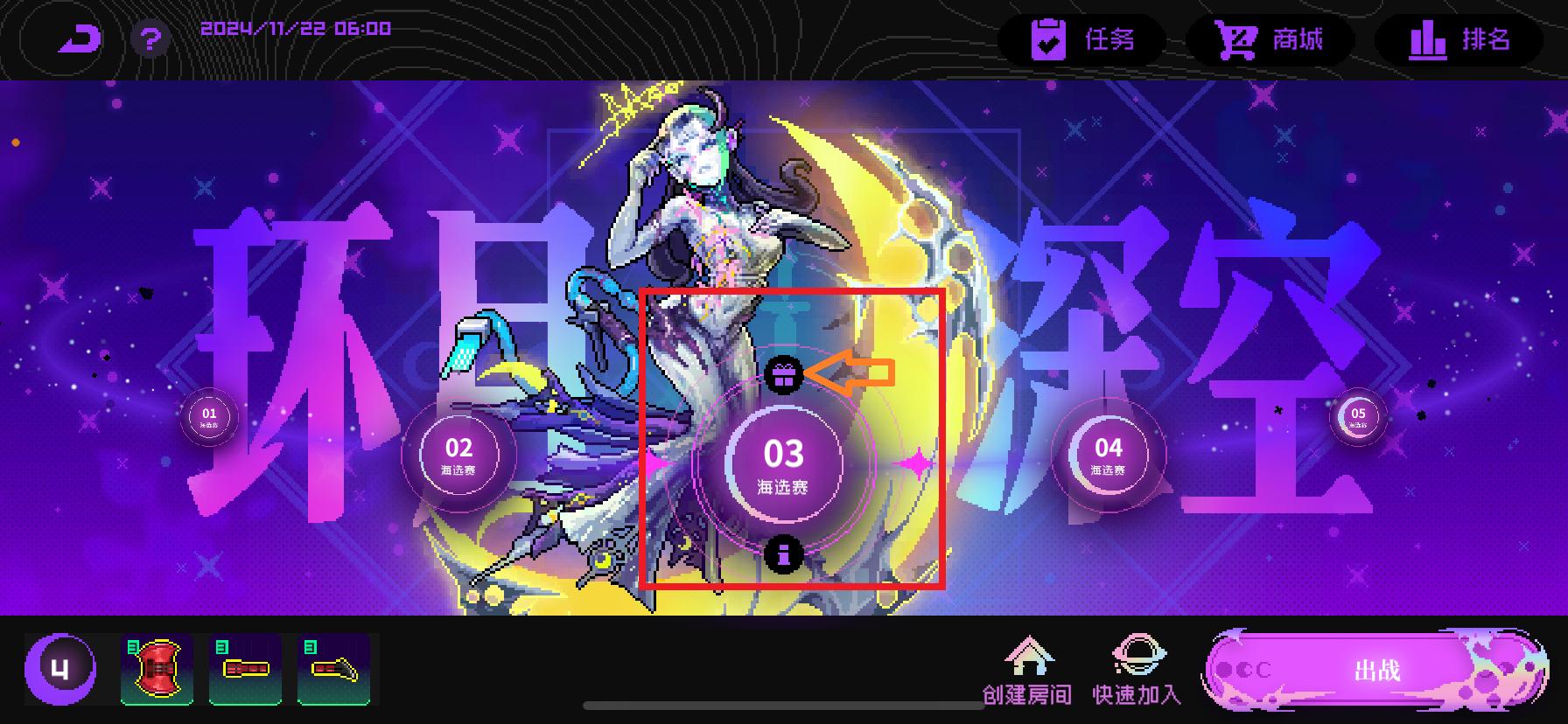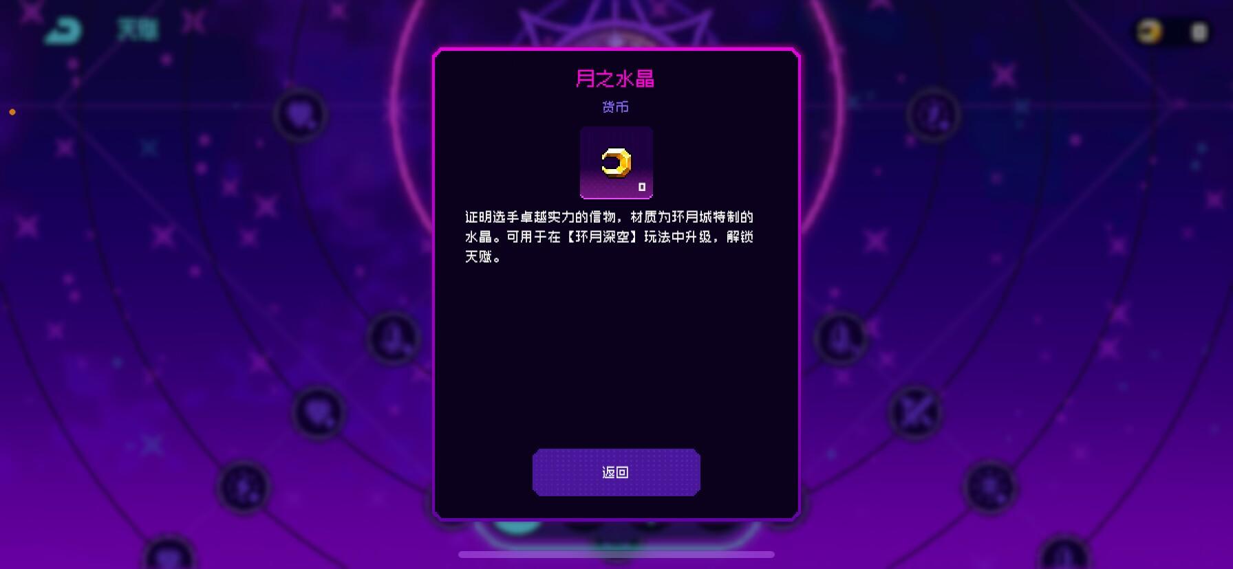 ”月之水晶“其实很好获取,不用氪金,一直打”海选赛“就可以获得了,跟碳酸模式一样,肝就完事了。。点击礼盒形状的可以看到掉落物,难度越高,”月之水晶“掉落的越多,并且掉落的”环月晶石“的品质越高,环月晶石的作用我放在下面讲。