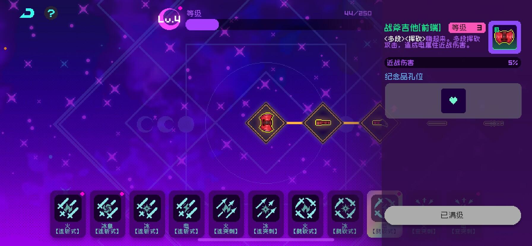 我们再把剩下的战斧吉他[核心]和战斧吉他[末端]都升满级,然后装在身上: