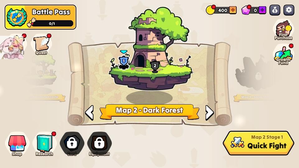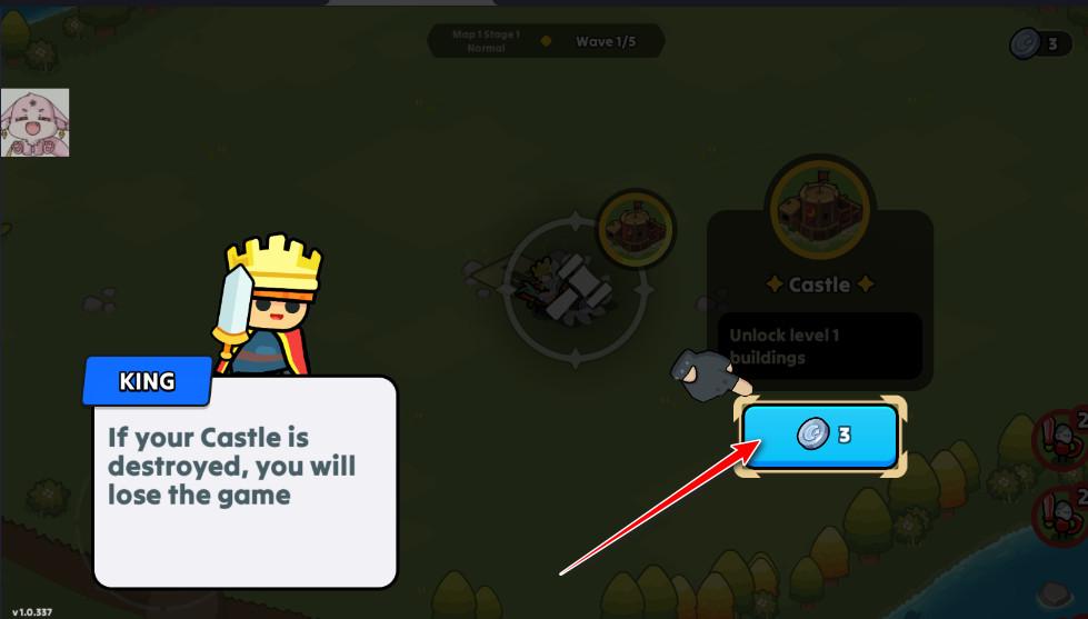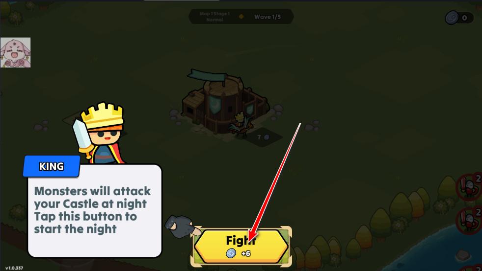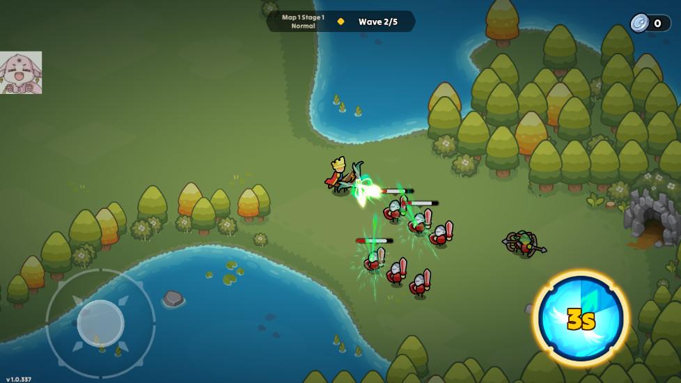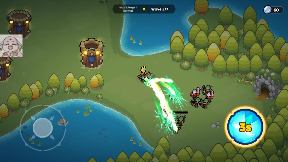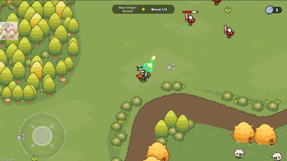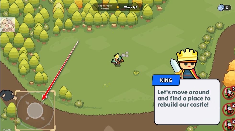 1.在本站下载安装并运行夜幕王国边境塔防,左下角的虚拟摇杆可以控制角色进行移动