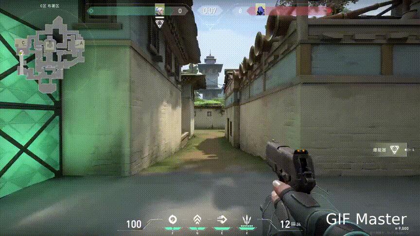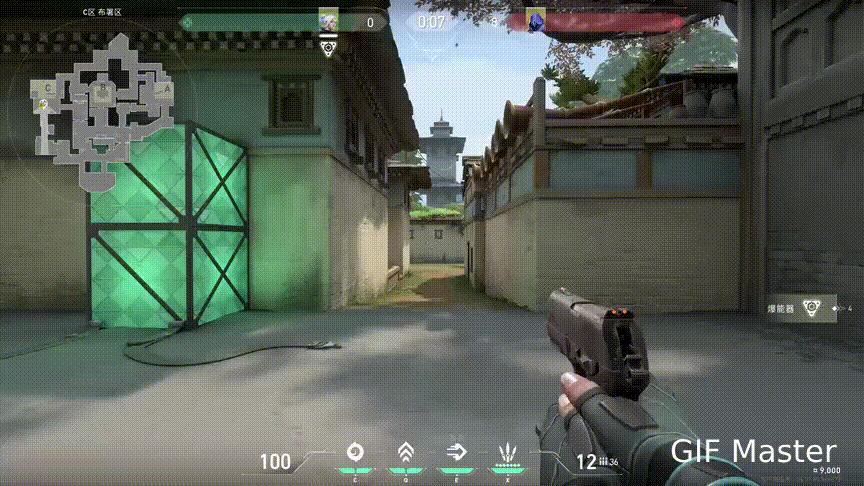 Q技能“赛博囚笼”:在地面上设置一条隐形的绊线,当敌人触发绊线时,会受到电击伤害并暴露位置,同时零会收到提醒,这个技能在防守炸弹安放点的必经之路或者可能的绕后路线上非常有效,可以提前发现敌方的进攻意图;