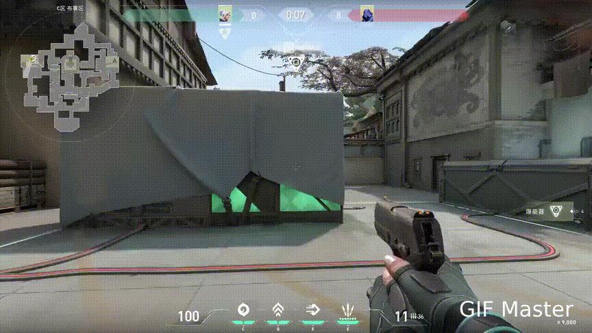 E技能“战术监控”:在地图上放置一个摄像头,摄像头可以提供一定范围内的视野,并且可以被零远程控制旋转视角,这使得团队能够实时掌握敌方的动向;