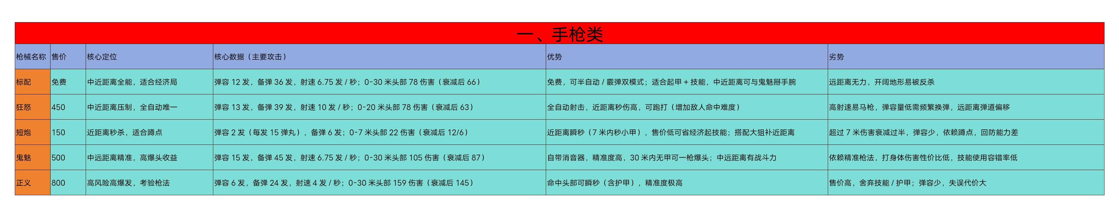 手枪作为对局中常见的武器类型,在经济有限或特定场景下发挥着重要作用。