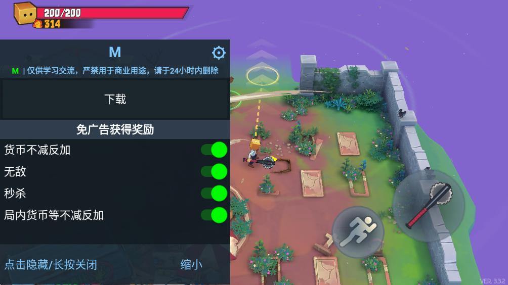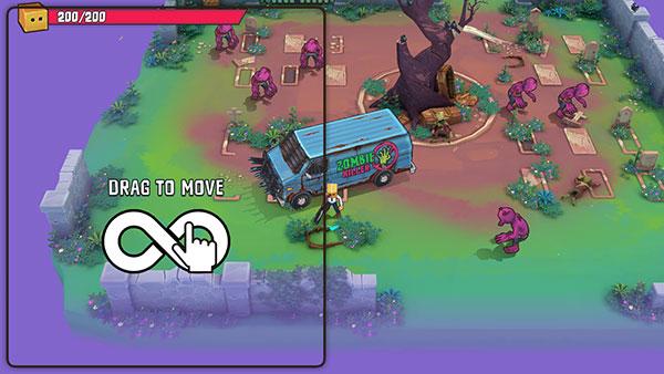 1.首先下载好本站带来的盒子头僵尸必须死,进入首页,开始教程,玩家通过左边滑动来控制角色的移动。