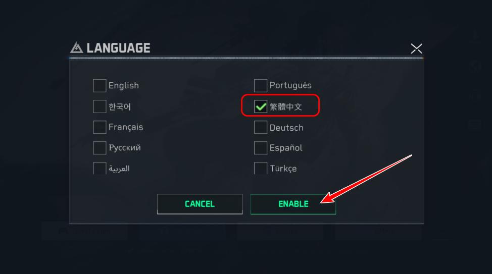 3.选择繁体中文,然后点击Enable