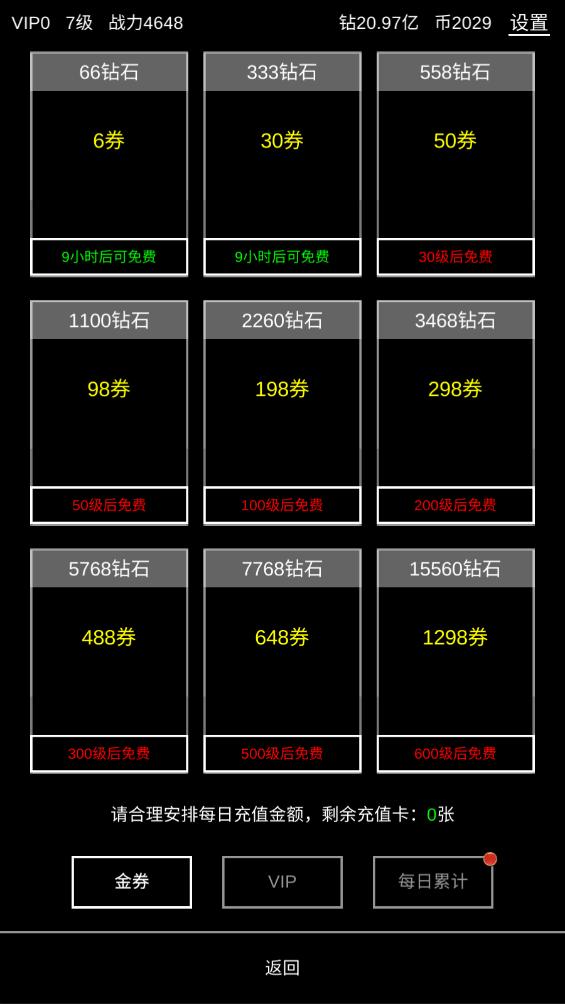 6.点击右上角的金券,还可以领取大量的钻石。