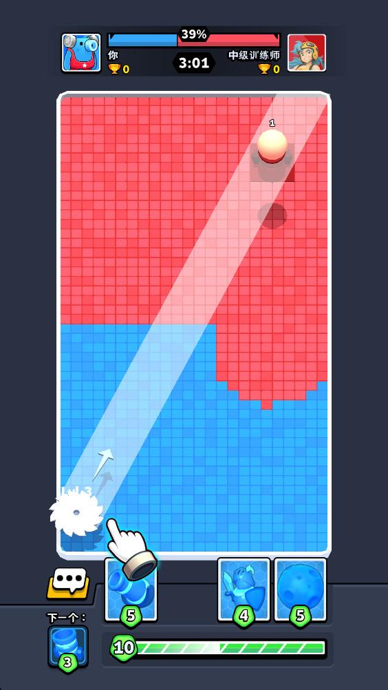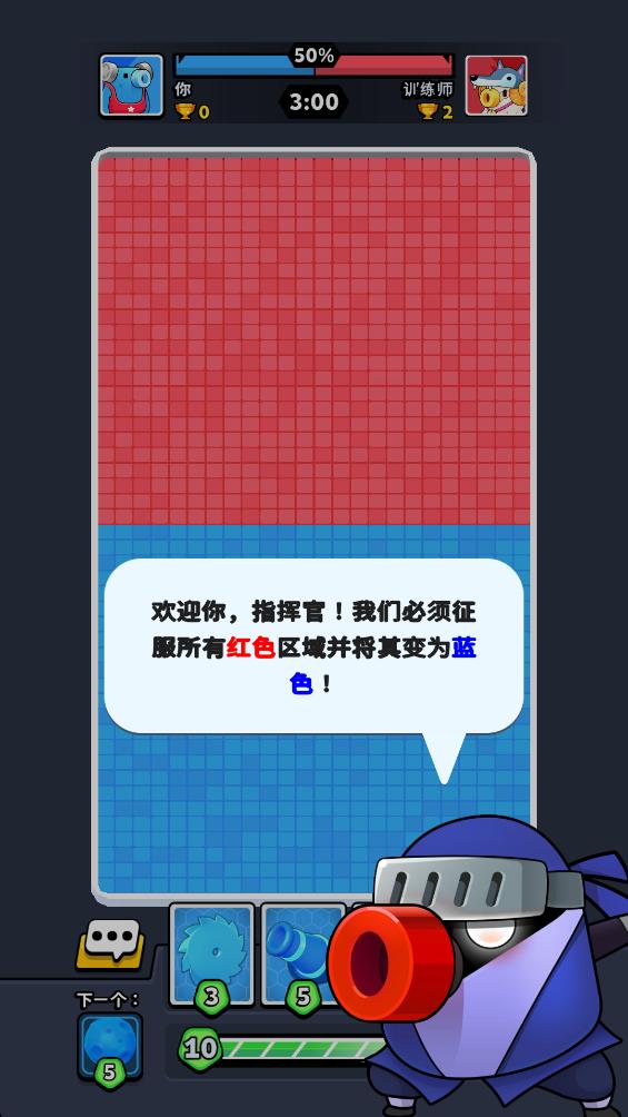 1.进入游戏后就会有新手教程,首先你将代表蓝色区域将红色区域吞并。