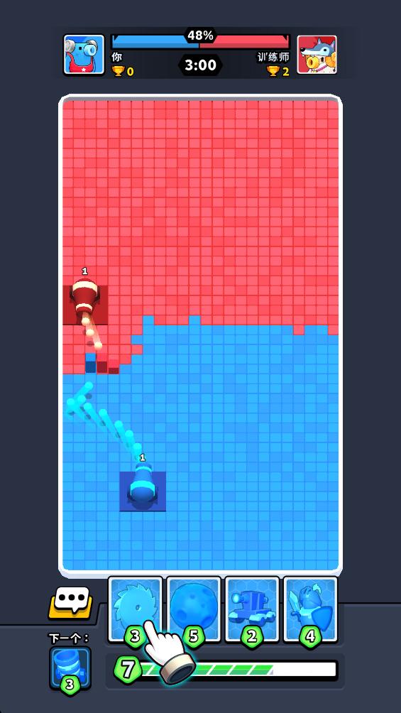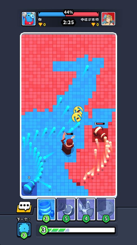 色彩突袭是一款融合了策略与快节奏的、充满创意的卡牌对战游戏,胜负不再仅仅取决于卡牌的数值,更在于你对色彩的掌控与战术的布局,你手中的每一张卡牌都代表着一种力量,它们可能是能大面积涂抹颜色的单位,也可能是能清除对手颜色、反转局势的奇兵。这要求你不仅仅要考虑如何攻击,更要巧妙地防守,利用卡牌的组合效果,以智取胜。
