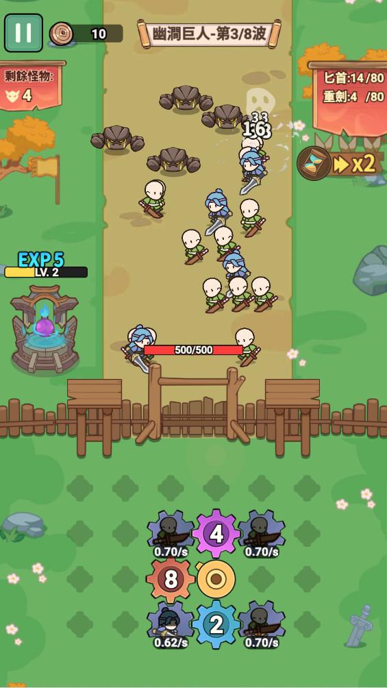 光头向前冲是一款充满策略与挑战的放置割草游戏,你将指挥一个强大的光头士兵军团,运用智慧与策略,借助各种齿轮武器,横扫一切敌人,成为无可匹敌的战斗指挥官。每次进入战斗前,你需要仔细布置士兵和齿轮的位置。每个齿轮具有不同的攻击方式与范围,而合理的布阵将决定战斗的胜负。
