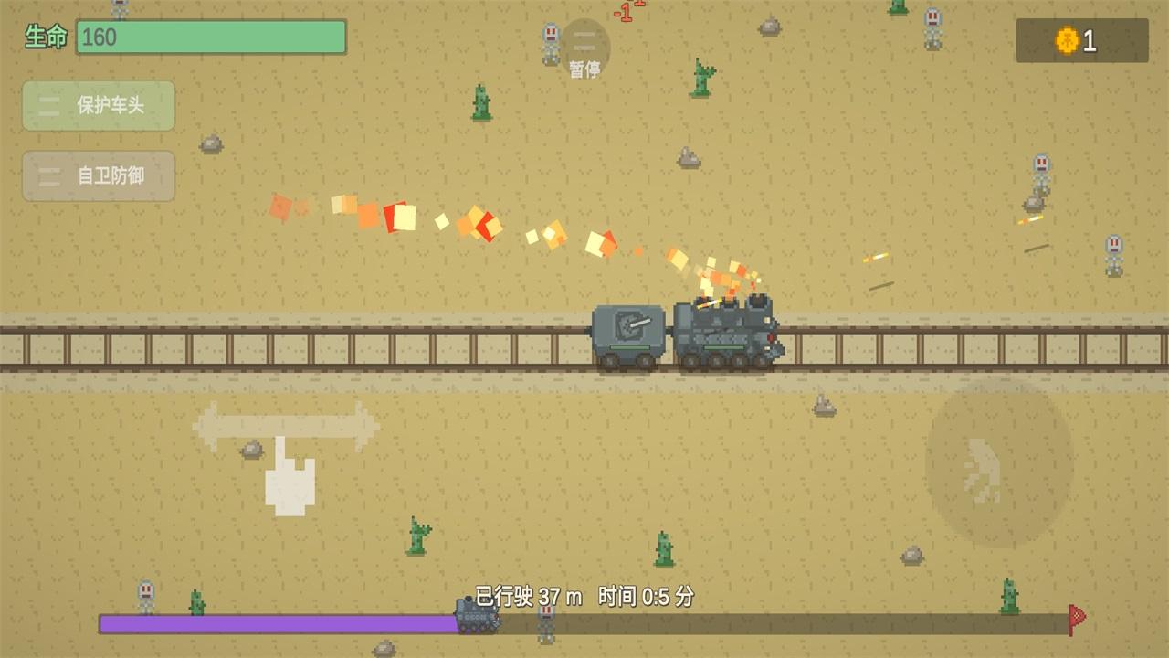 3.列车前进会自动攻击周围围上来的敌人。