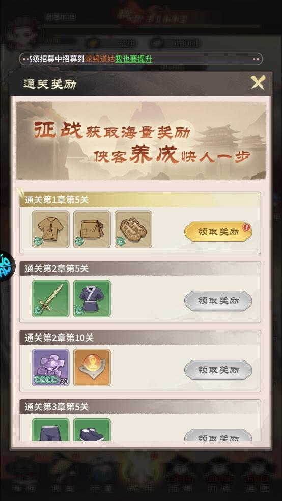 2. 进入游戏后,跟着新手引导走,先招募伙伴,随后便可开启你的江湖闯荡之路;
