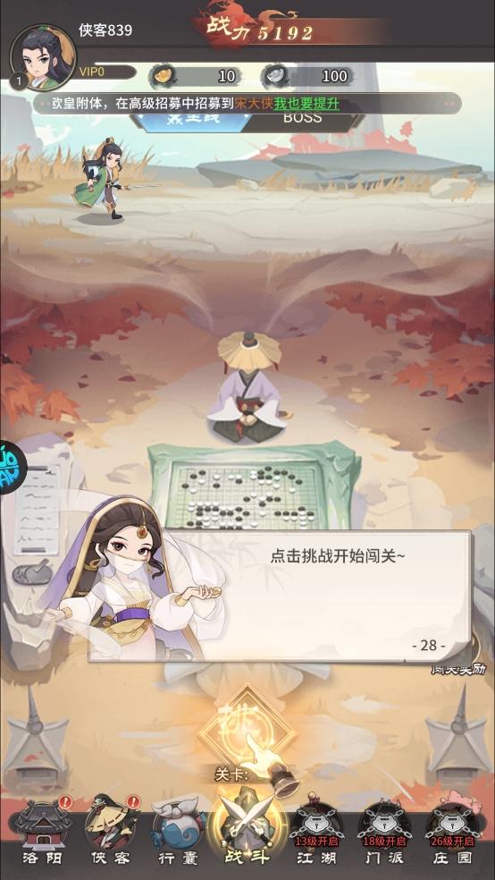 3. 想要闯关时,点击“挑战”按钮就能开启一场江湖对决;