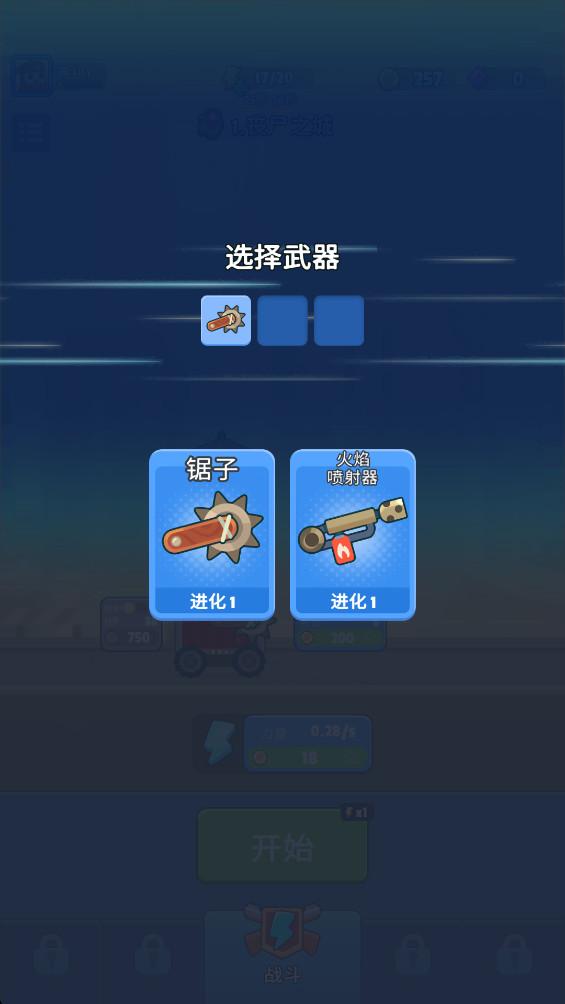 3.玩家们可以使用金币升级游戏内的武器装备,增强角色的生命力和攻击力,购买全新形态的武器,游戏下方的是玩家们可以放置的武器和装备,放置到玩家们下方的格子中。