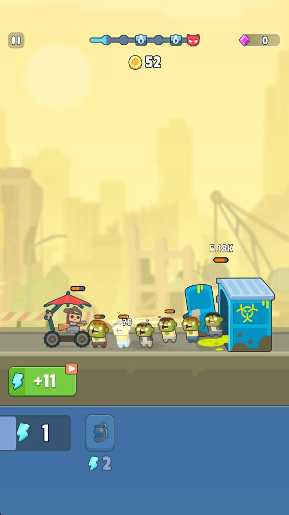 2.游戏上方的横条就是玩家们的目标,横条上的每一个节点都是一波巨大的攻击,到达最底部即可游戏胜利,获取大量的游戏奖励,游戏里玩家们每击败一个僵尸即可获取大量金币。