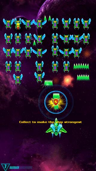 2、一共有三波敌人,第一波是最简单的,玩家还可以在击败敌人飞船后拾取加强的道具