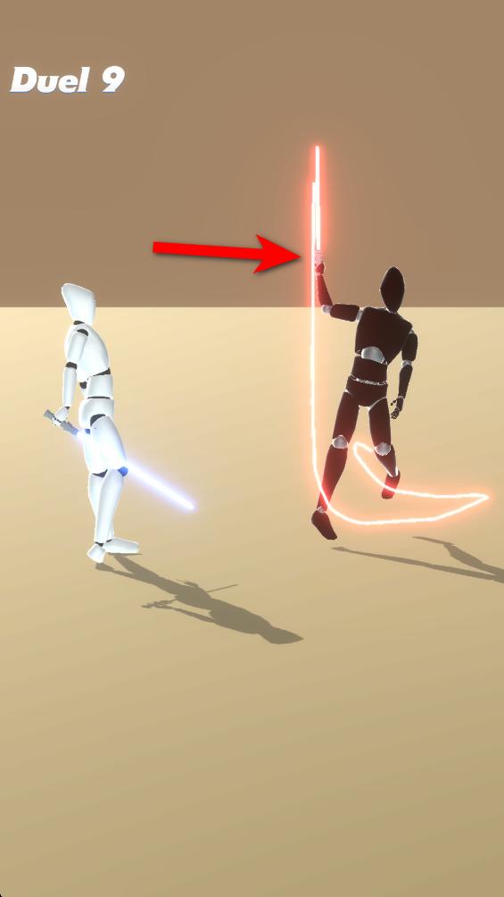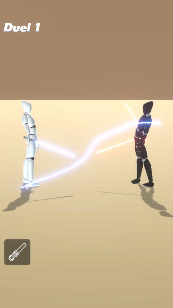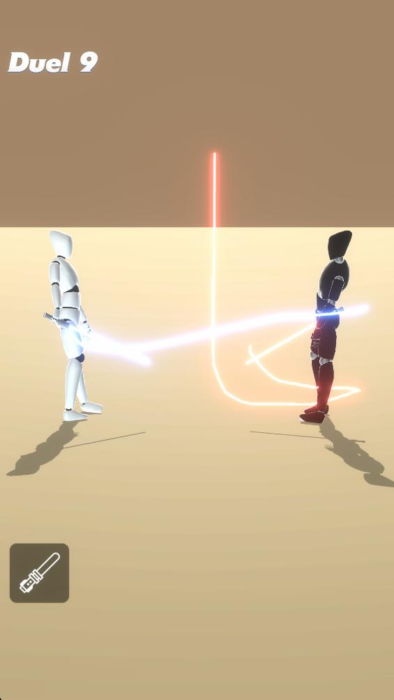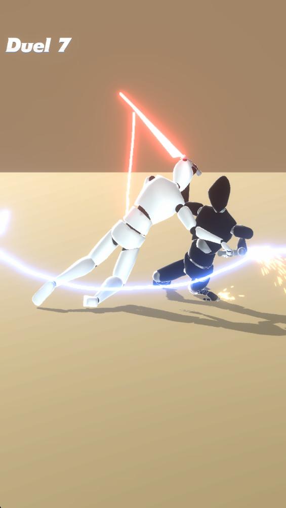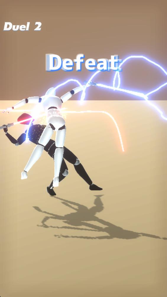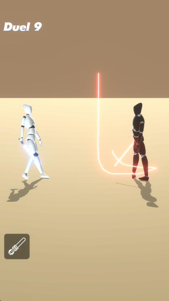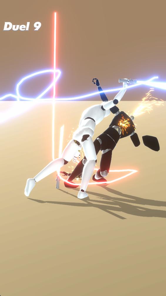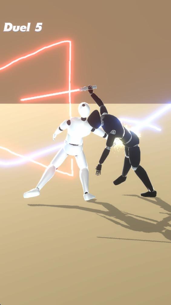 3.你需要画出白色机器人的剑的轨迹来控制白色机器人,在躲避黑色机器人的攻击的同时,将对方杀死。