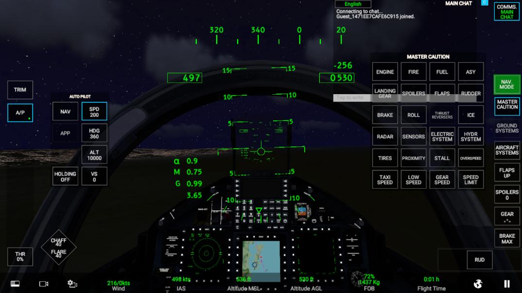 4.在游戏过程中,玩家还可以实时查看飞机的时速等相关数据。