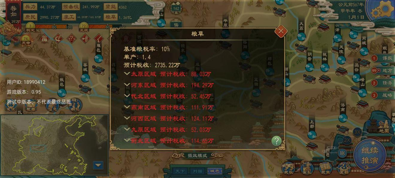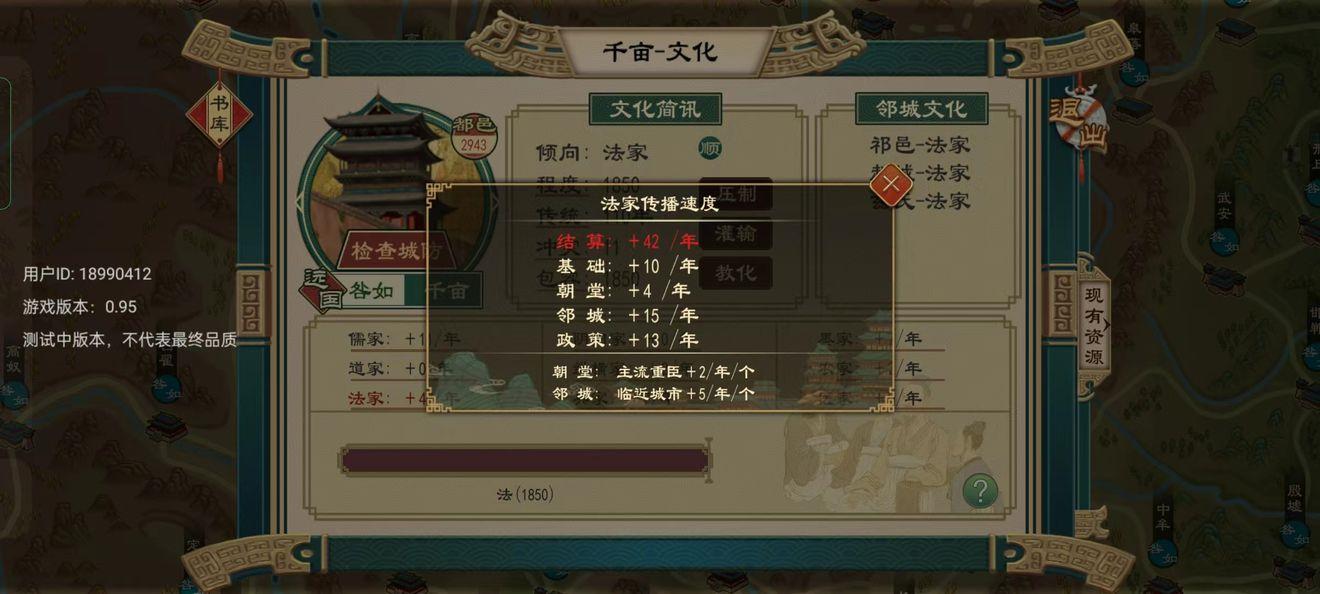 政策:实行政策和选择国家流派,君上可以根据自己的玩法来选择合适的流派,夏酱推荐新手可以尝试一下,儒家,农家,道家,上手后可以玩法家,兵家,想搞谍战等特殊玩法可以玩,墨家,道家。