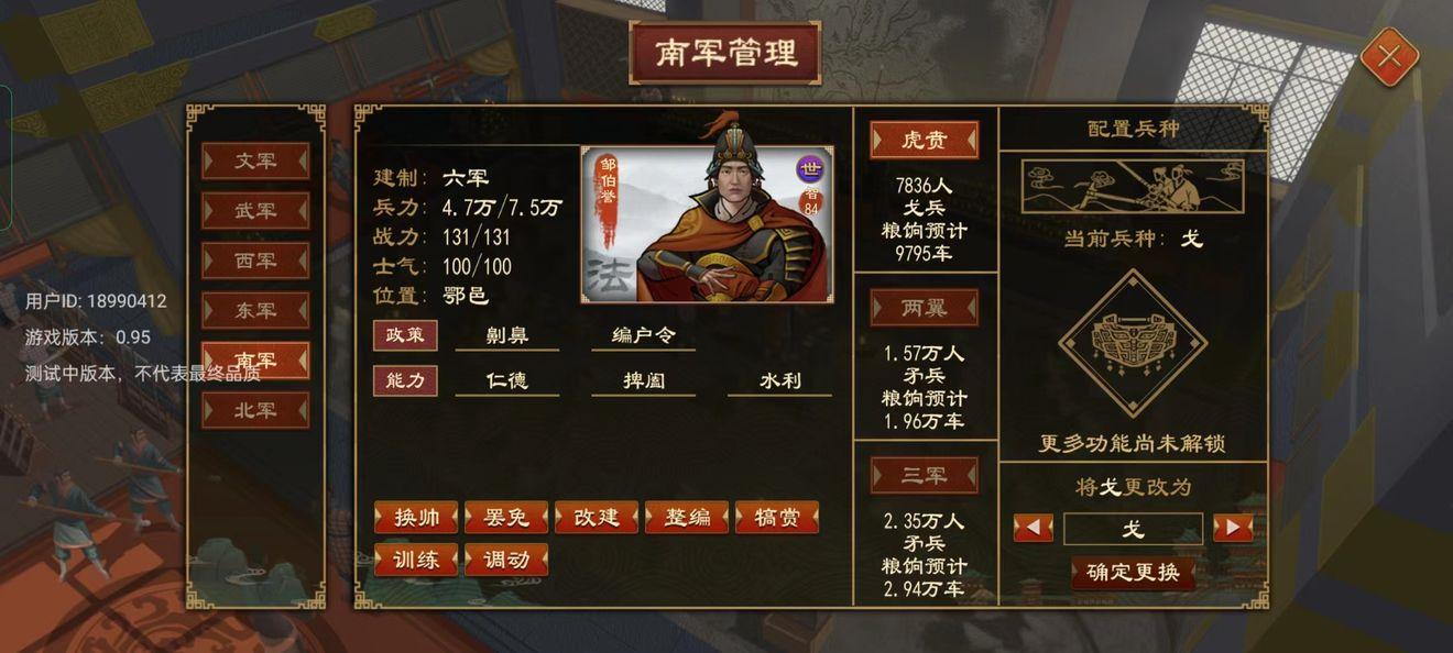 军队规模: 前期建议一军在2w-3w,大国规模自然是多多益善,小国人口即使徭役拉满预备役数量也很难上去,数量上是比不过只能比质量了。