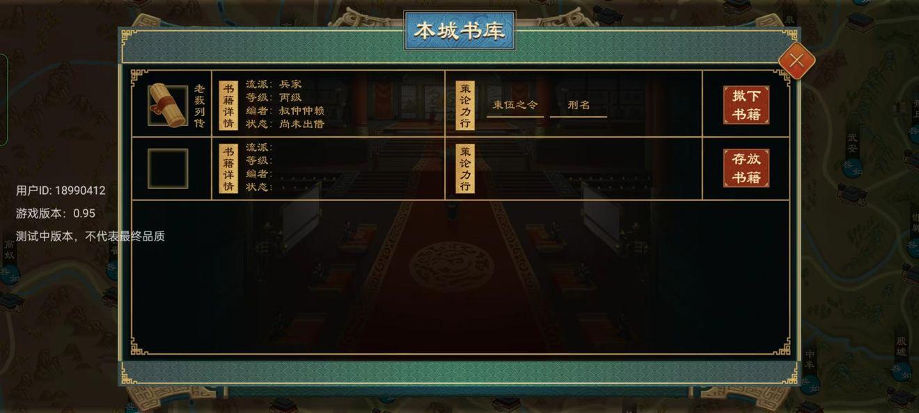 可以将书放进书库来增加文化传播速度一本10点传播速度,要注意书是那个流派,就增益那个流派,君上不要放错了,君上可以将书放在与他国接壤的边关,来增加我们的文化渗透,也可以来抵御来自他国文化入侵,也可以用在征伐获得的城邑,增加文化传播速度洗文化。
