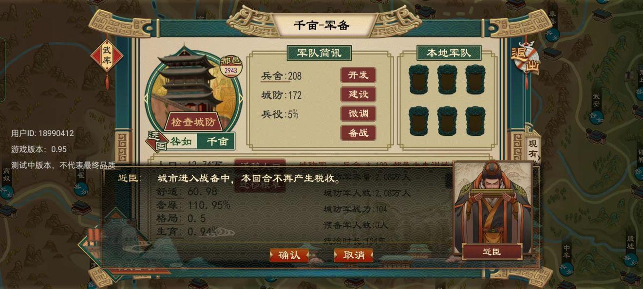 军队战斗力:通过训练军队增加,默认战斗力上限100,执行特定兵家政策可以提高上限。