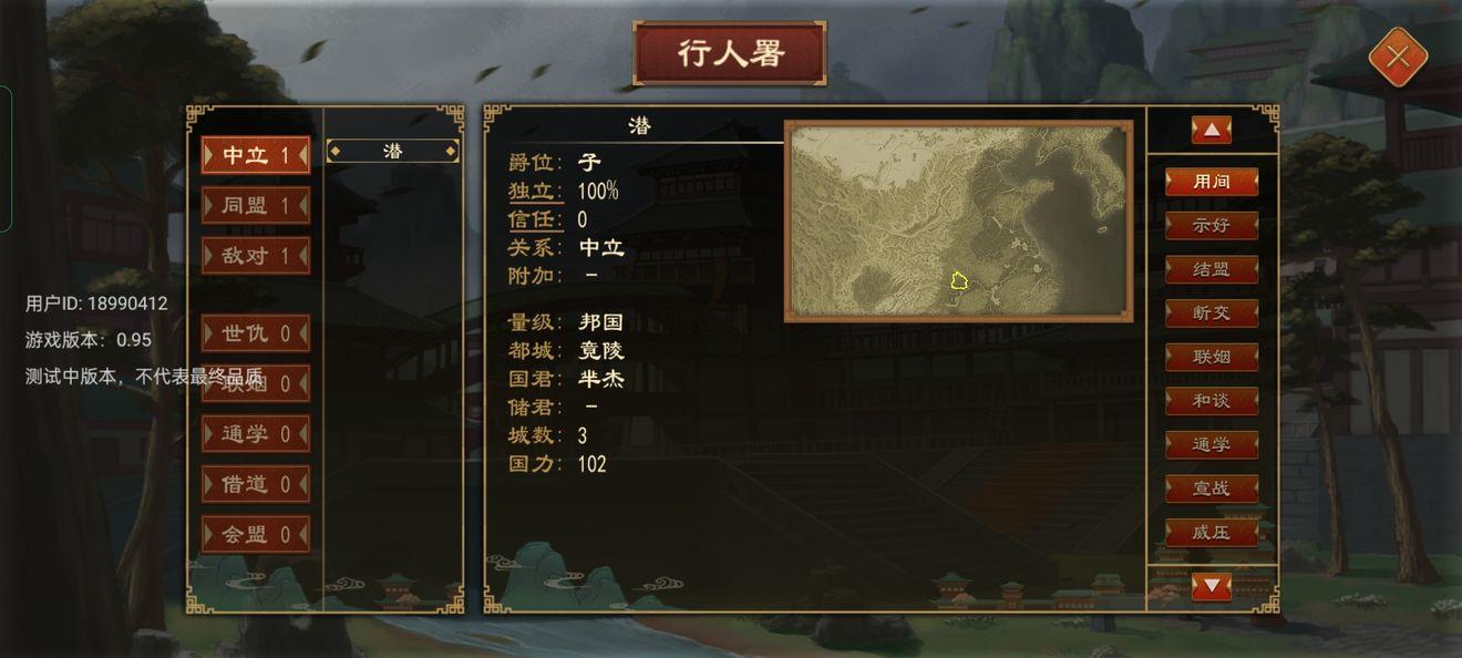 会盟署:开启/参与会盟的地方,会盟可以制定条约,还可以诸侯相王来达到升爵的效果。详细的外交我会专门写一篇用间来细说。