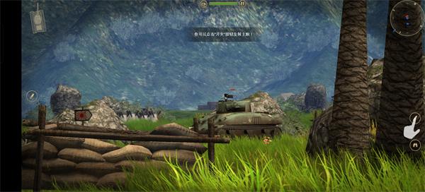4.跟着目标行动,我们来到绿色烟雾这里,点按瞄准在发射炮弹来击败敌人。