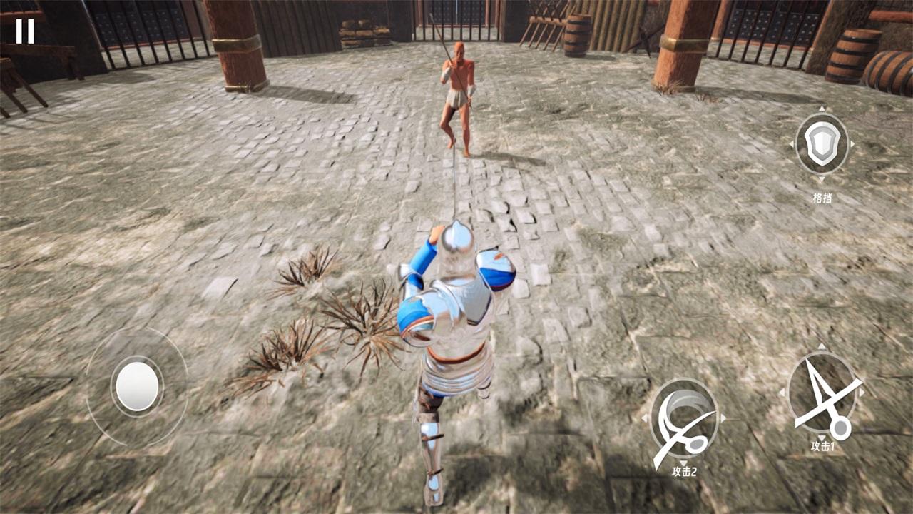 4. 正式开始后左边控制角色的移动,右边是两种不同的攻击方式和格挡。