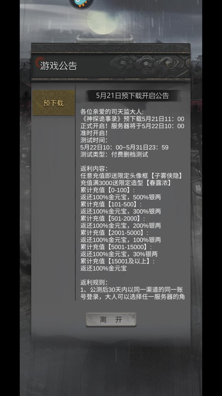 神探诡事录是一款以武侠为背景的悬疑探案题材的策略放置玩法为主的手游,游戏中玩家们将跟随主角的视角来这个古风世界中,在这里你将会遇到各种诡异的案件,只有发挥你仔细的观察力和推理能力才能顺利的在这些世界中找到真相。