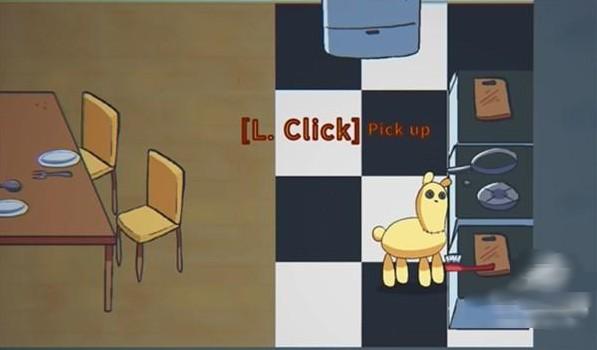 7.直接将玩偶旁边的杯子捡起来,打开冰箱,就能倒入牛奶。