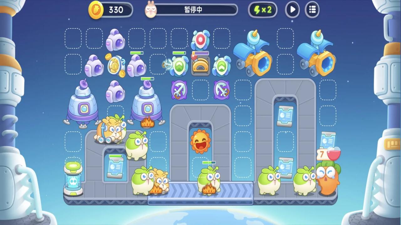 右侧上方加一船锚升一级,盯好冰冻兔,少冻炮塔,此时船锚升满级