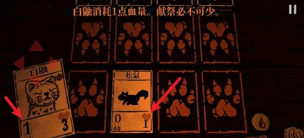 2.不同的卡牌有着不同的打出条件。例如,白鼬牌需要献祭一点血量才能打出。合理规划您的血量和卡牌,是取得胜利的关键。