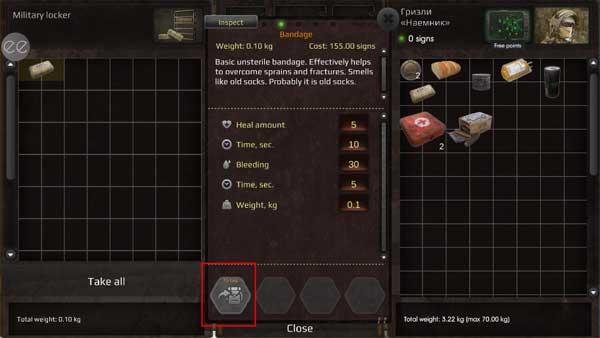 4.选中左边的物资,并点击下方的按钮就可以将它放入到自己的背包中。