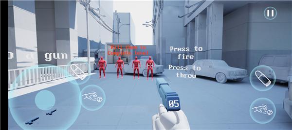 5.枪支在手时,功能键就会变成射击键和投掷键;玩家可以通过十字架来瞄准敌人,然后点击子弹按钮,进行射击;