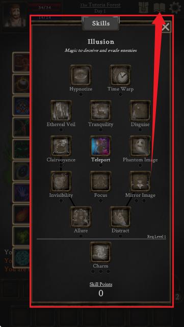 8、点击【书本】的图标,如图所示,可以查看自己的技能点。