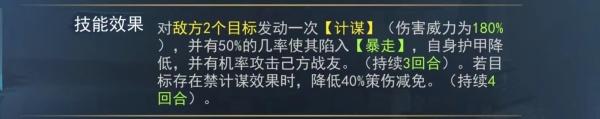荀彧的〔驱虎吞狼〕能禁掉敌军全体两回合的恢复,并且对敌全军的大面积杀伤。荀彧的搭配以骑兵队为主,既可以作为禁疗或谋略工具人辅助,也可以作为主要输出。