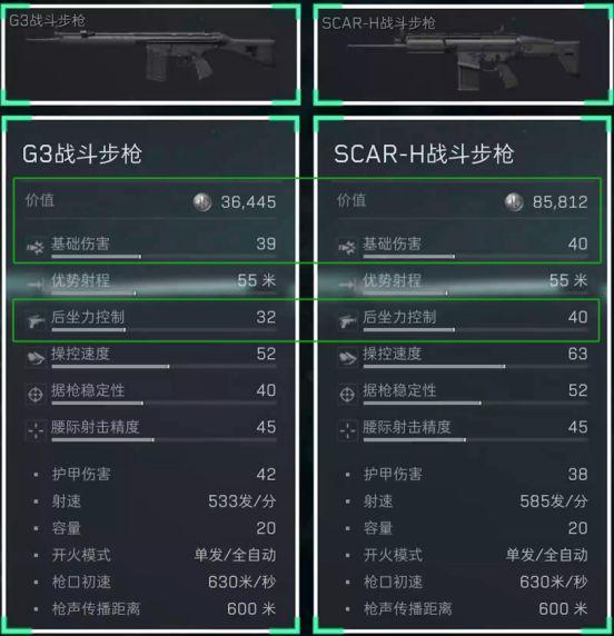 SCAR-H战斗步枪虽然在护甲伤害方面低于G3战斗步枪,但其整体操控属性更强,射击稳定性也更高,并且可改装空间更大,能适用于多种战斗场景。