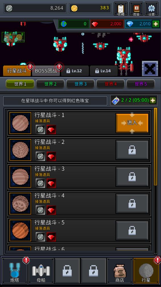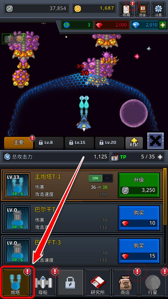 4.玩家一边闯关,一边可以打开下方的炮塔页进行升级。