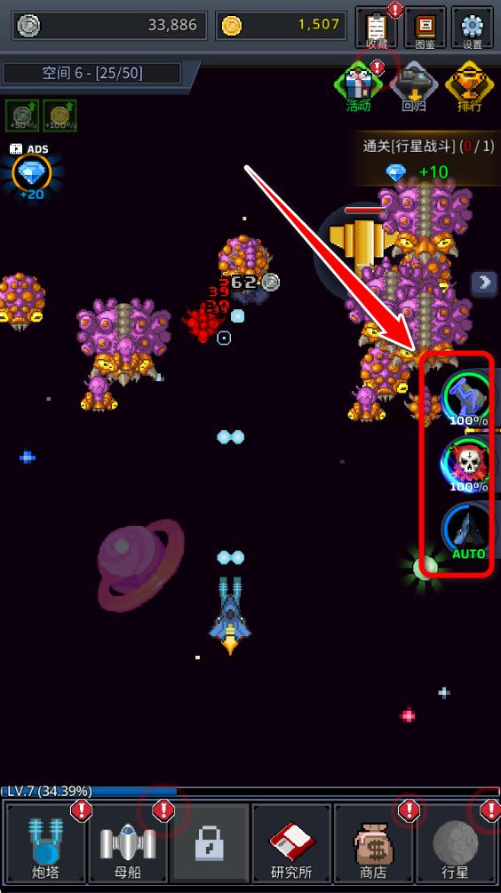 2.当右侧的技能图标积累到100%的时候,就可以使用飞机的专属技能。