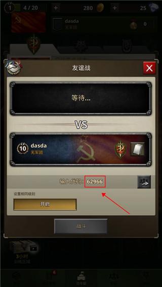 2、在这里可以输入好友分享给你的入场码,点击入场就可以了,也可以点击【开友谊战】来自己建立房间。