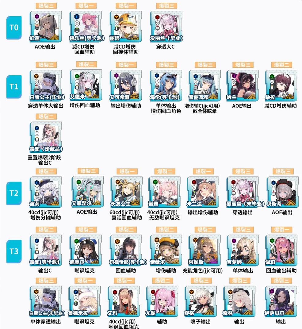 布兰儿(白兔)+诺亚尔(黑兔):为第二版本国家队套件,同部队羁绊能让白兔大招减少40S的CD,变成20S;这个组合有生存有易伤,推图面对毒气怪的群体AOE有不错的对抗能力;适合越战且怪物伤害较高的场景/自动党的福音。