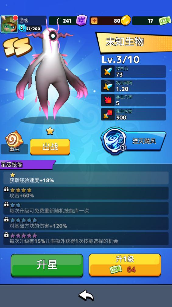 2.玩家每次击打到足够数量的方块之后,就可以提升一次小技能等级。