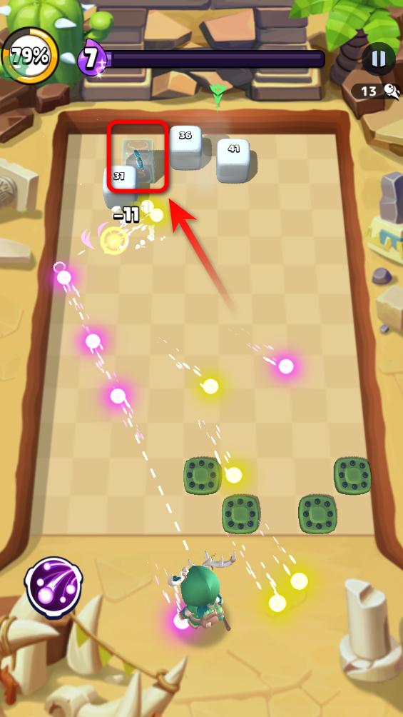 5.在疯狂砖块破坏者游戏中还有个神秘技能,就是一个蓝色的小圆圈,里面有增益效果,这个无法击打掉,但是玩家可以用子弹穿过它,获得能力增益。
