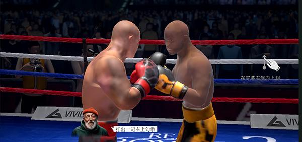3、在屏幕右侧向上划动,打出一记右上勾拳。