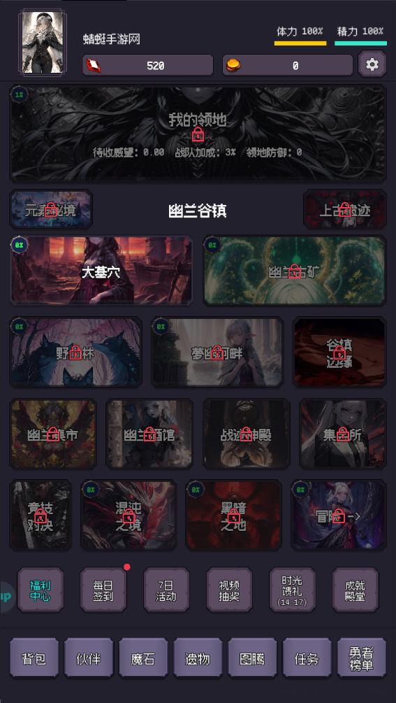 2.背包,伙伴,随从,任务,勇者榜单,各种提升角色实力的方法,点击我的领地,玩家即可扩展领地提升领地宅邸的领土。
