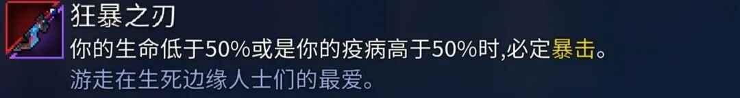 原因:出色的手感,配合变异开放性伤口,可以达到100%暴击,属性条可以洗对流血效果增加%伤害的属性,可以说是完美,如果非要挑毛病的话和刺客匕首一样攻击距离短